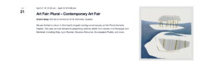 Plural célèbre le meilleur de l’art contemporain au Canada. Créée par et pour les galeries, la foire rassemble et présente la pluralité des voix et des œuvres en art contemporain au pays. Elle élève les pratiques du marché de l’art : d’une part, avec une sélection rigoureuse de galeries présentant des artistes et des œuvres soigneusement choisis; d’autre part, par le biais d’une programmation accessible abordant les thématiques actuelles du champ des arts. Plural favorise la découverte des nouvelles voix et des formes d’expression en art contemporain de pointe, tout en cultivant un esprit de collectivité au sein de la communauté artistique canadienne.